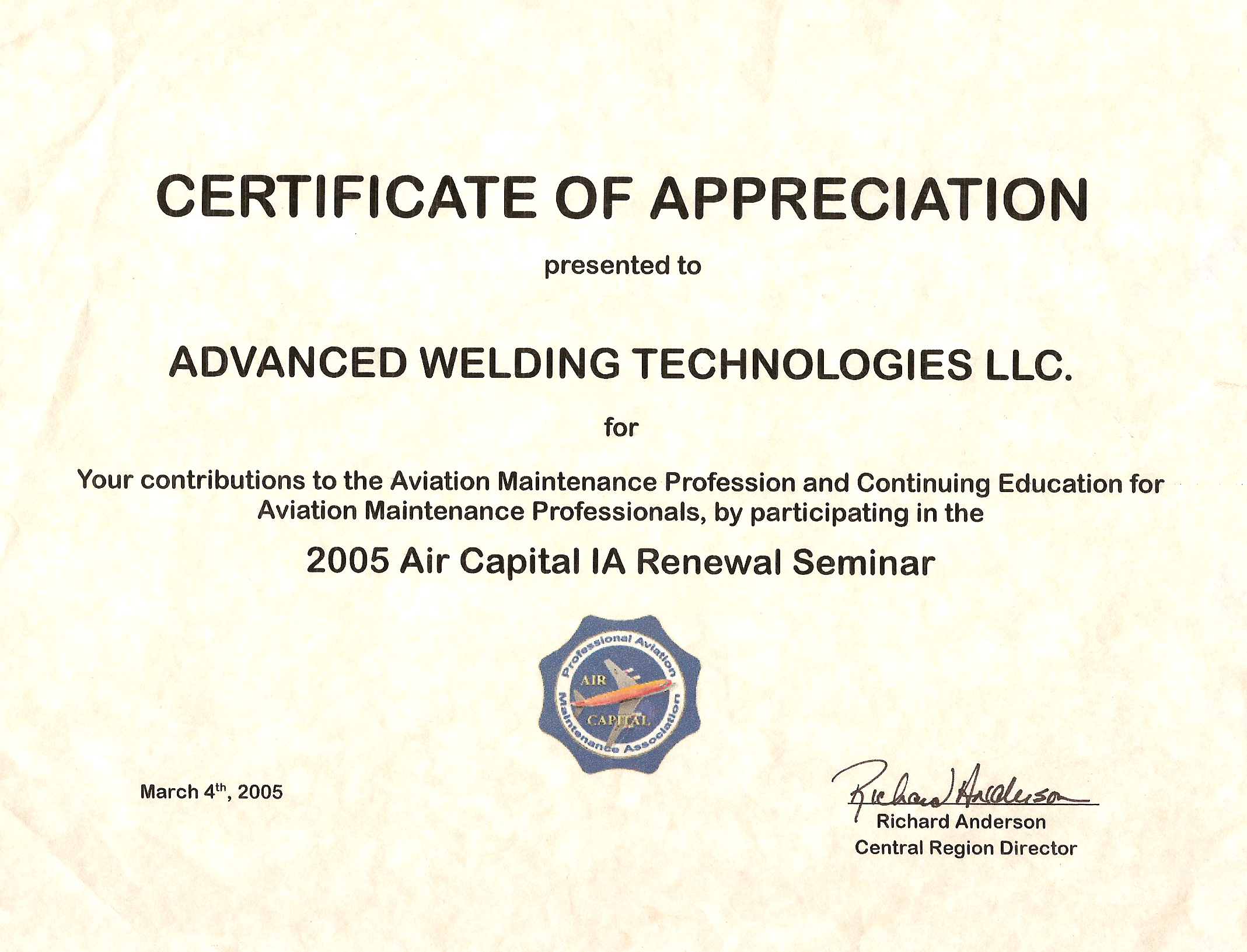 Approval and Recognition Pictures The following photos are some of the Approvals and Recognitions held by AWT. Certification Pictures can be found here.
